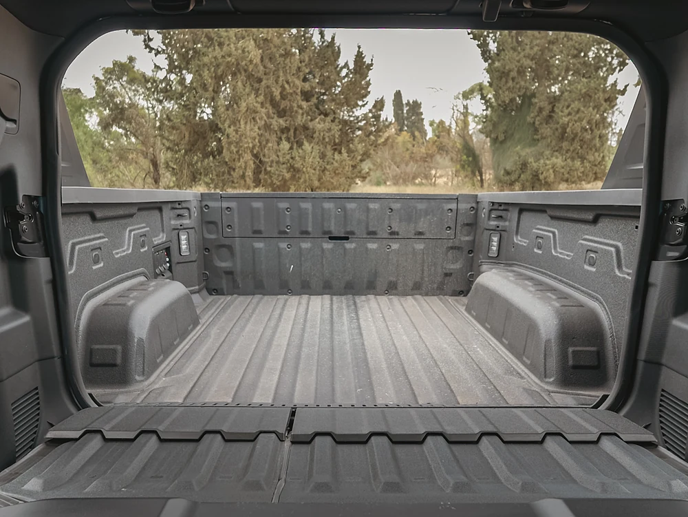 כאן נכנס ה-Multi-Flex Midgate – פתרון שמאפשר לפתוח מעבר בין הקבינה לארגז, כדי להוביל פריטים ארוכים בצורה נוחה יותר. יחד עם יציאות חשמל וכוח בארגז, מתקבלת שימושיות חכמה שמשרתת גם עבודה וגם יום יום, בלי להסתבך עם פתרונות מאולתרים.