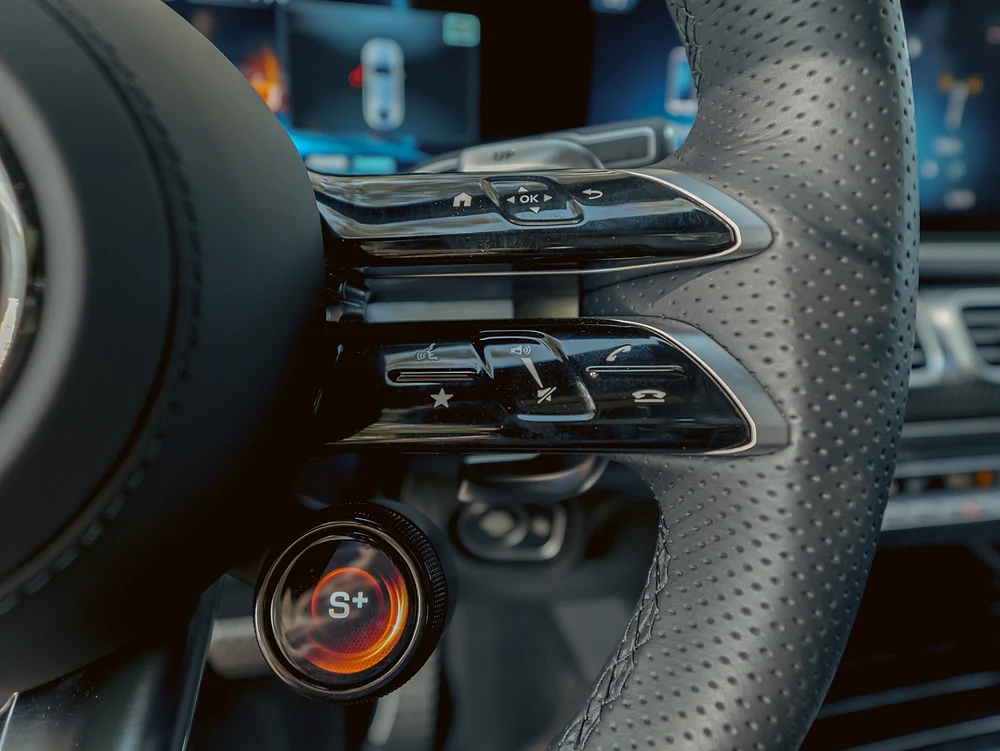 בתא הנוסעים הדגש עובר למערכות שמלוות את הנהג ביומיום ובנהיגה עצמה. מערכת שמע Burmester, תאורת אווירה ב-64 צבעים, טעינה אלחוטית, פתיחה בקרבה לרכב, הנעה מרחוק והגה Performance, יוצרים סביבת נהיגה עשירה, מתקדמת ומדויקת, עם חיבור ברור לעולם של AMG.
